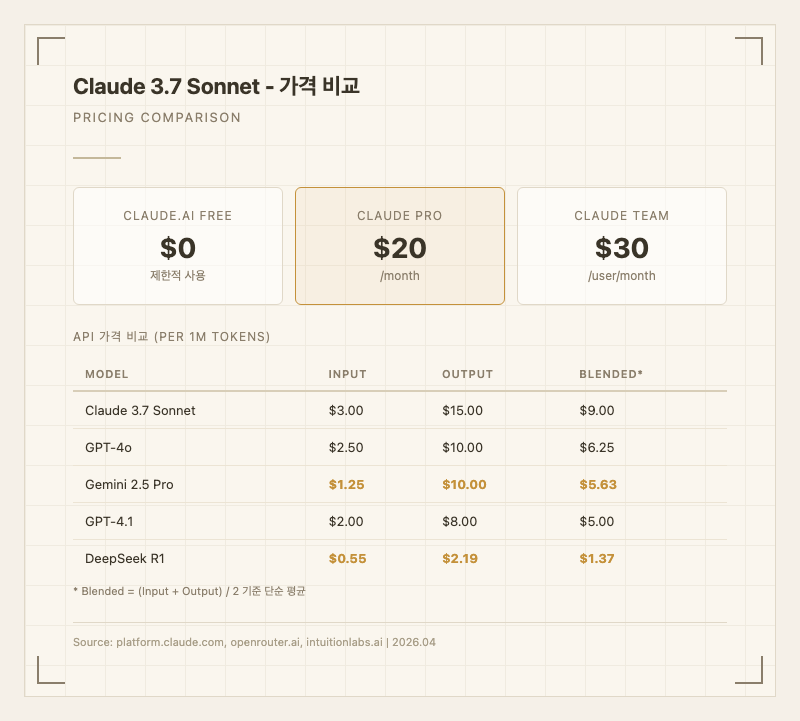 경쟁 모델 대비 비싼 편이다. Gemini 2.5 Pro(입력 10.00)보다 약 1.6배, DeepSeek R1(입력 2.19)보다 약 6.5배 비싸다. 한국어 사용자들 사이에서도 "돈 내고 써도 아깝지 않다"는 평가와 "GPT-4o나 Gemini Flash 대비 가격 대비 성능이 떨어진다"는 의견이 공존한다 (출처: 클리앙, intuitionlabs.ai).