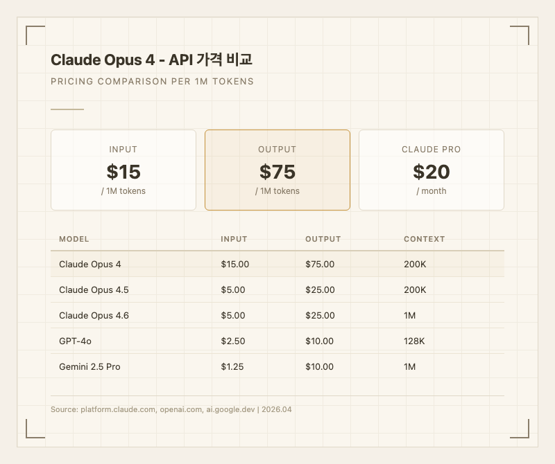 | API 가격 (출력) | $75 / 1M 토큰 |