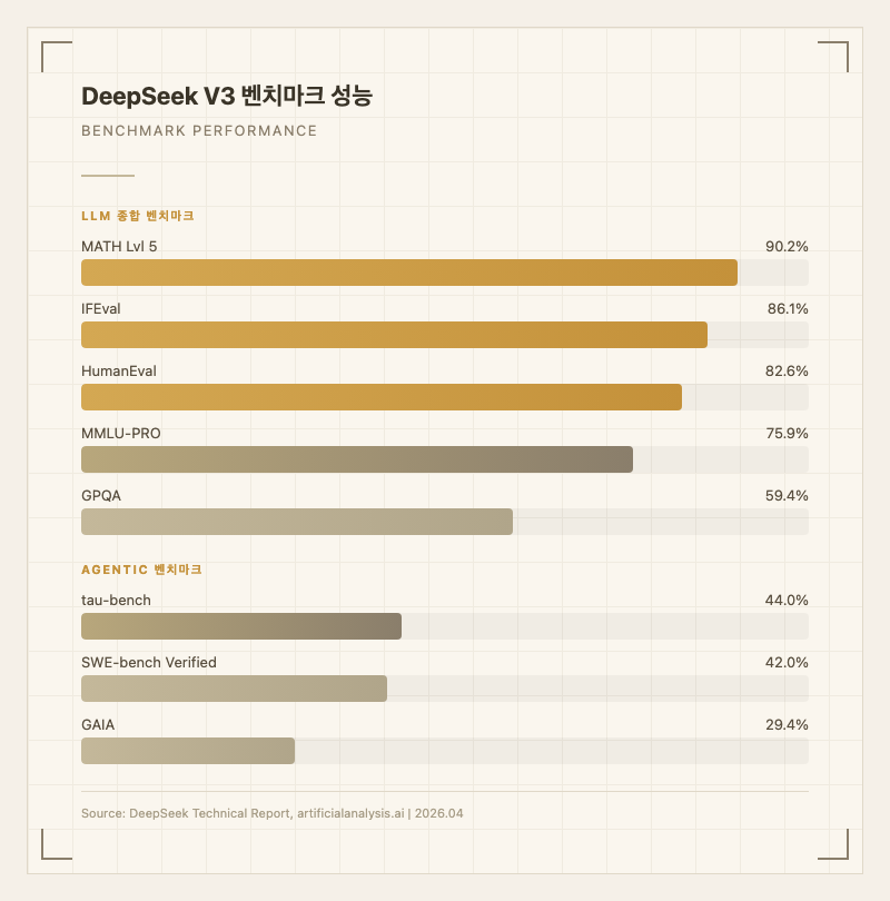 | 벤치마크 | DeepSeek V3 | 비고 |