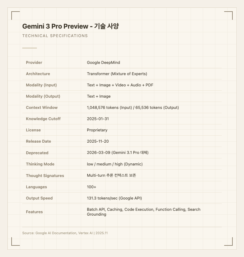 | Deprecated | 2026년 3월 9일 (3.1 Pro로 대체) |