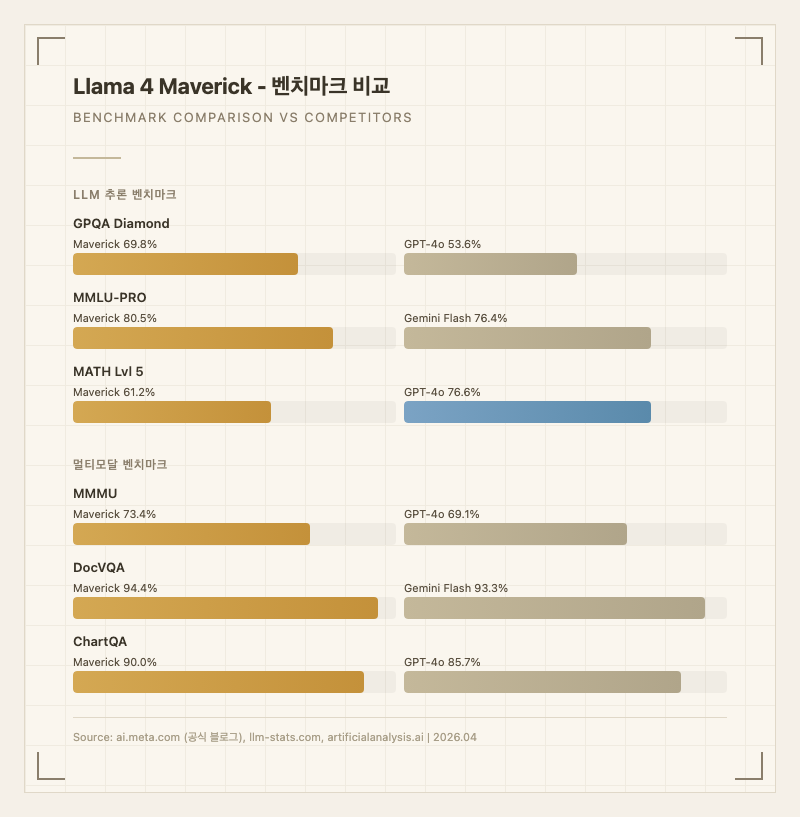 | 벤치마크 | Maverick | 비교 모델 | 출처 |